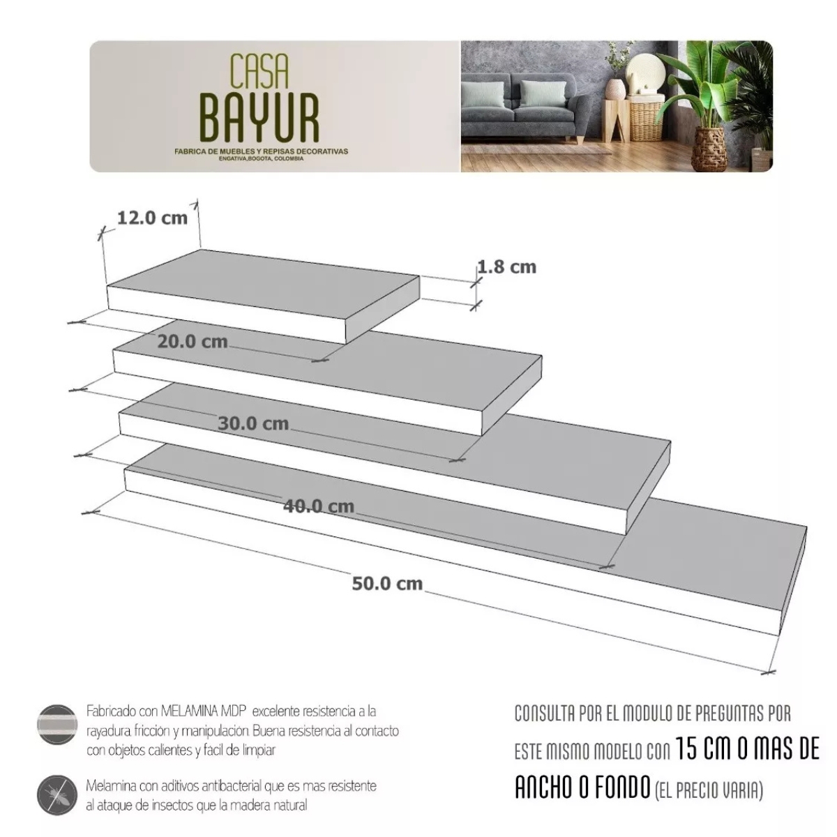 Fabricación colombiana con altos estándares. Cada repisa tiene garantía de 3 meses por defectos de fabricación.